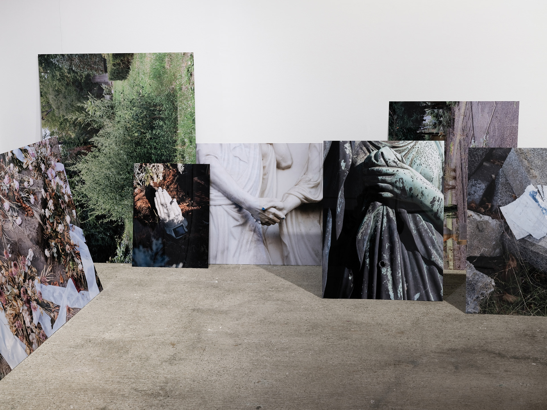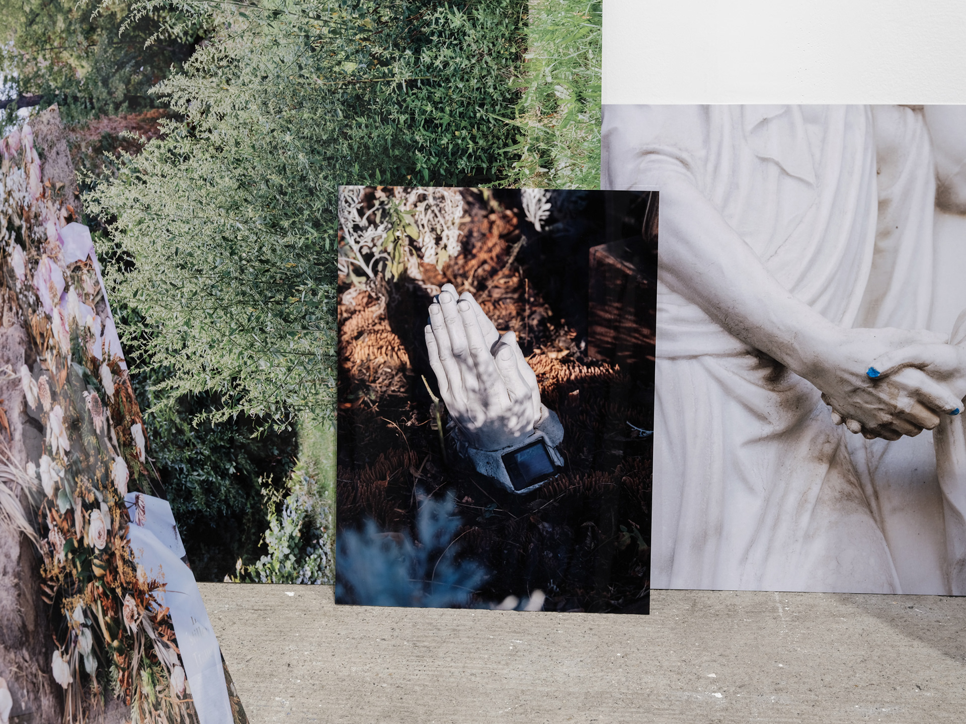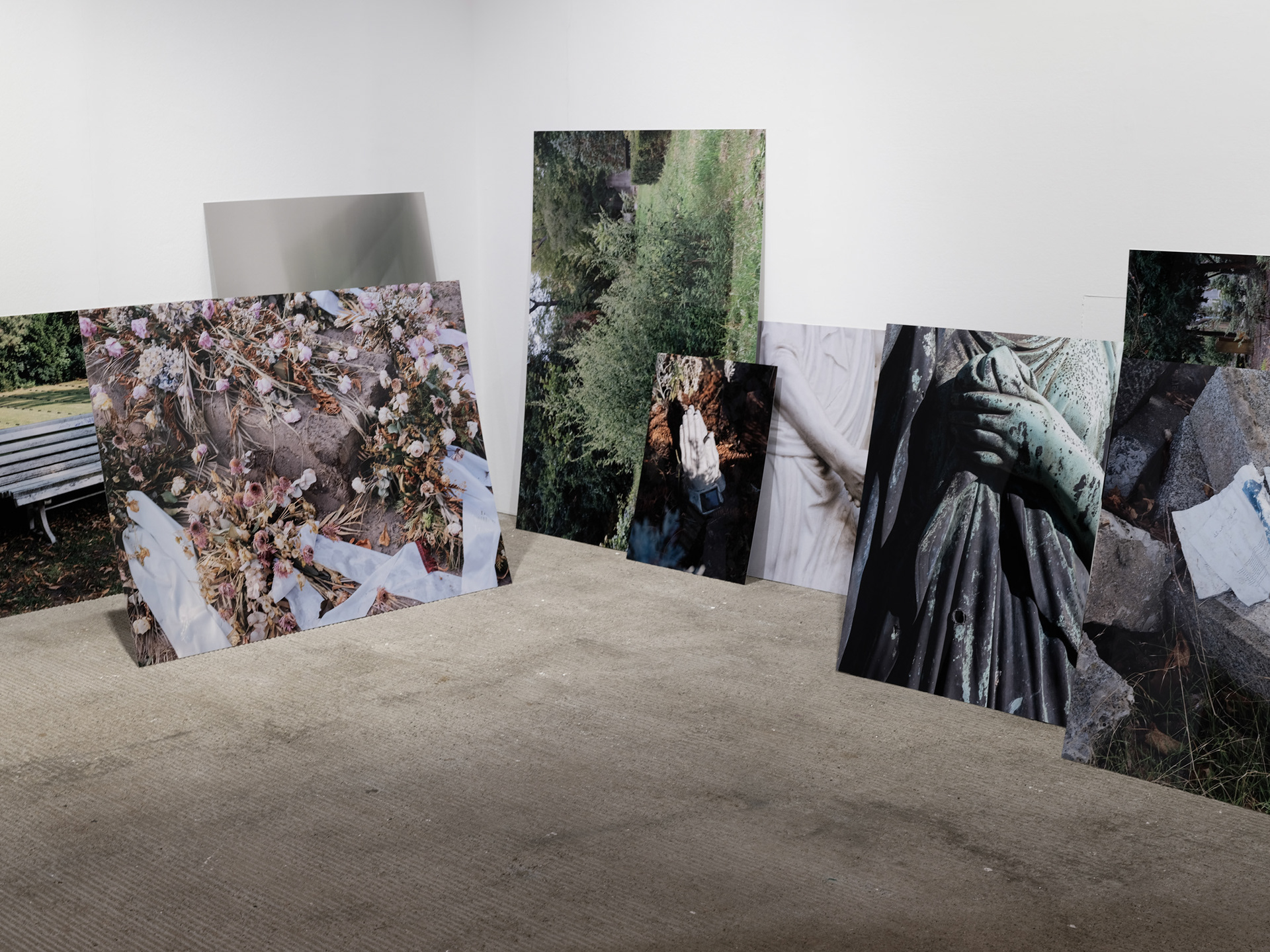 Saskia Groneberg’s interest unfolds at the intersection where the artificial and the organic meet. From the cultivated greenery of the corporate world (Büropflanze) to the staged landscapes in Vesuv, Venus, or Wasserfall, and her current body of work Nachwelt—dedicated to Berlin’s cemeteries—her practice traces a line from working life to the endpoint of human existence. Groneberg’s works reveal how profoundly our relationship to nature is permeated by cultural projections, and how longing, control, and loss converge within them.