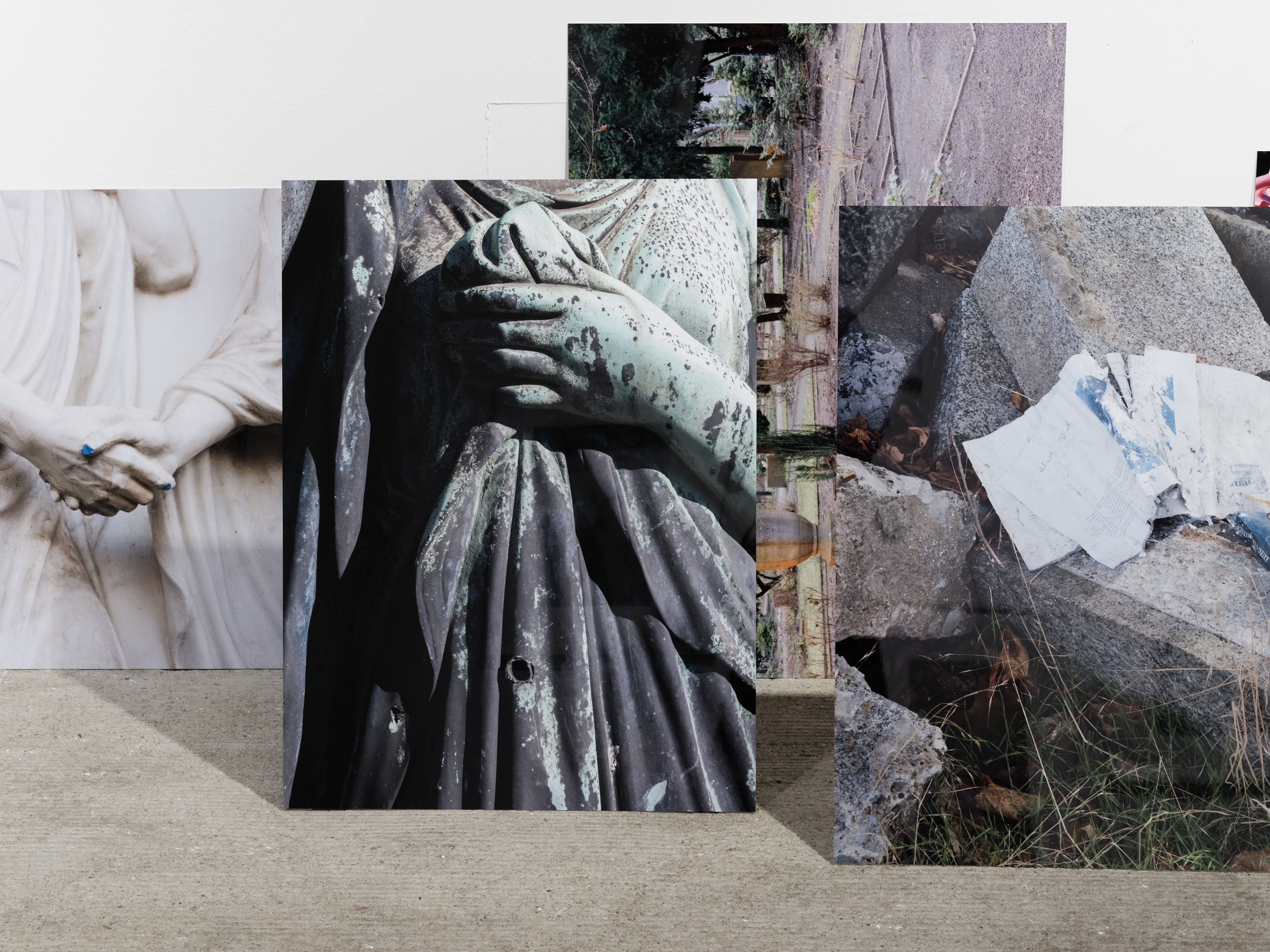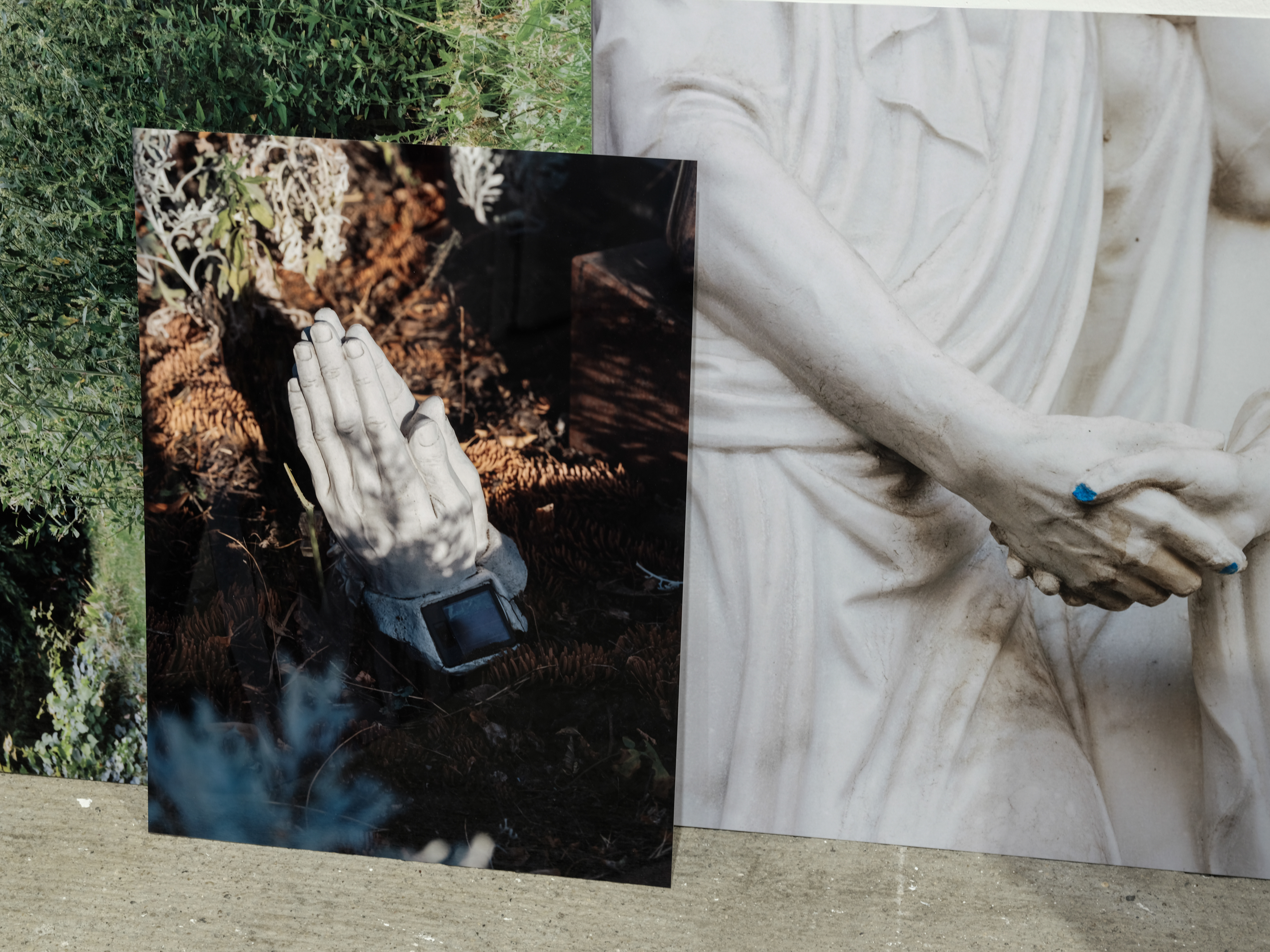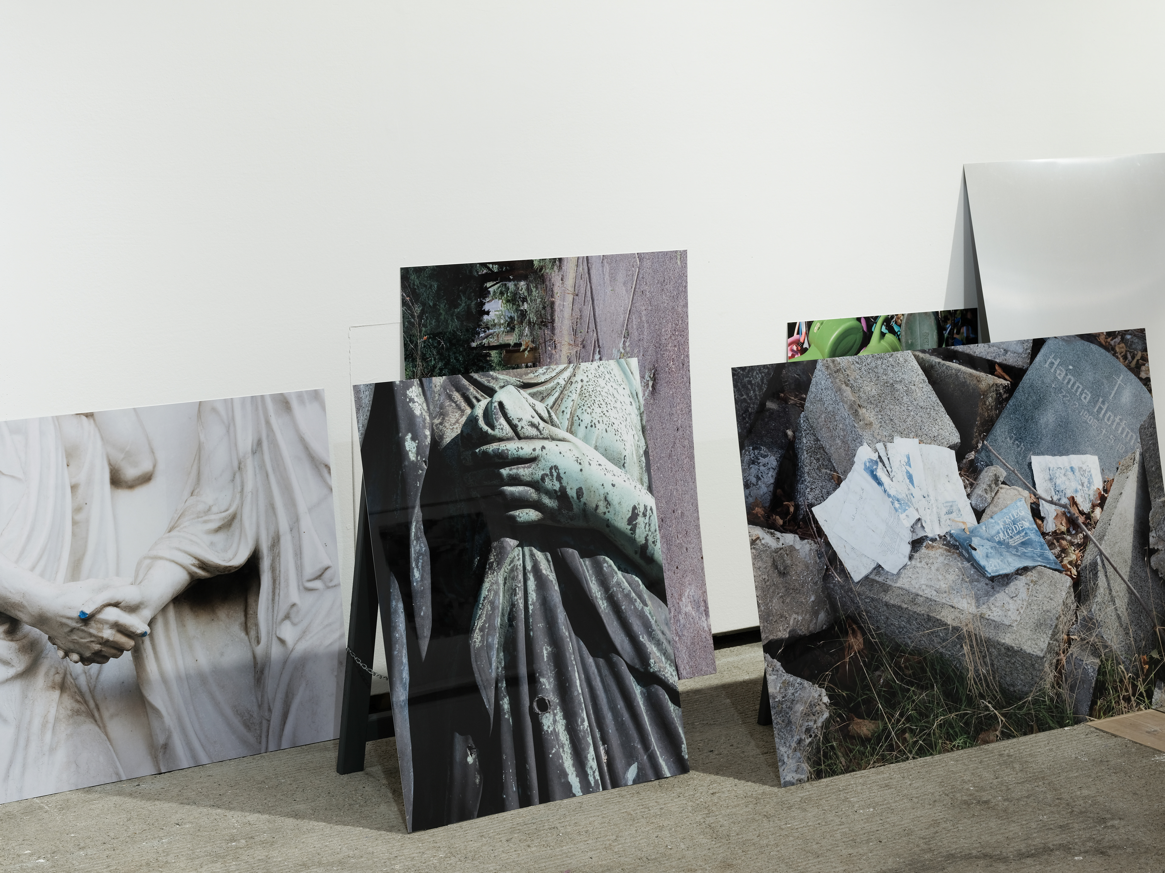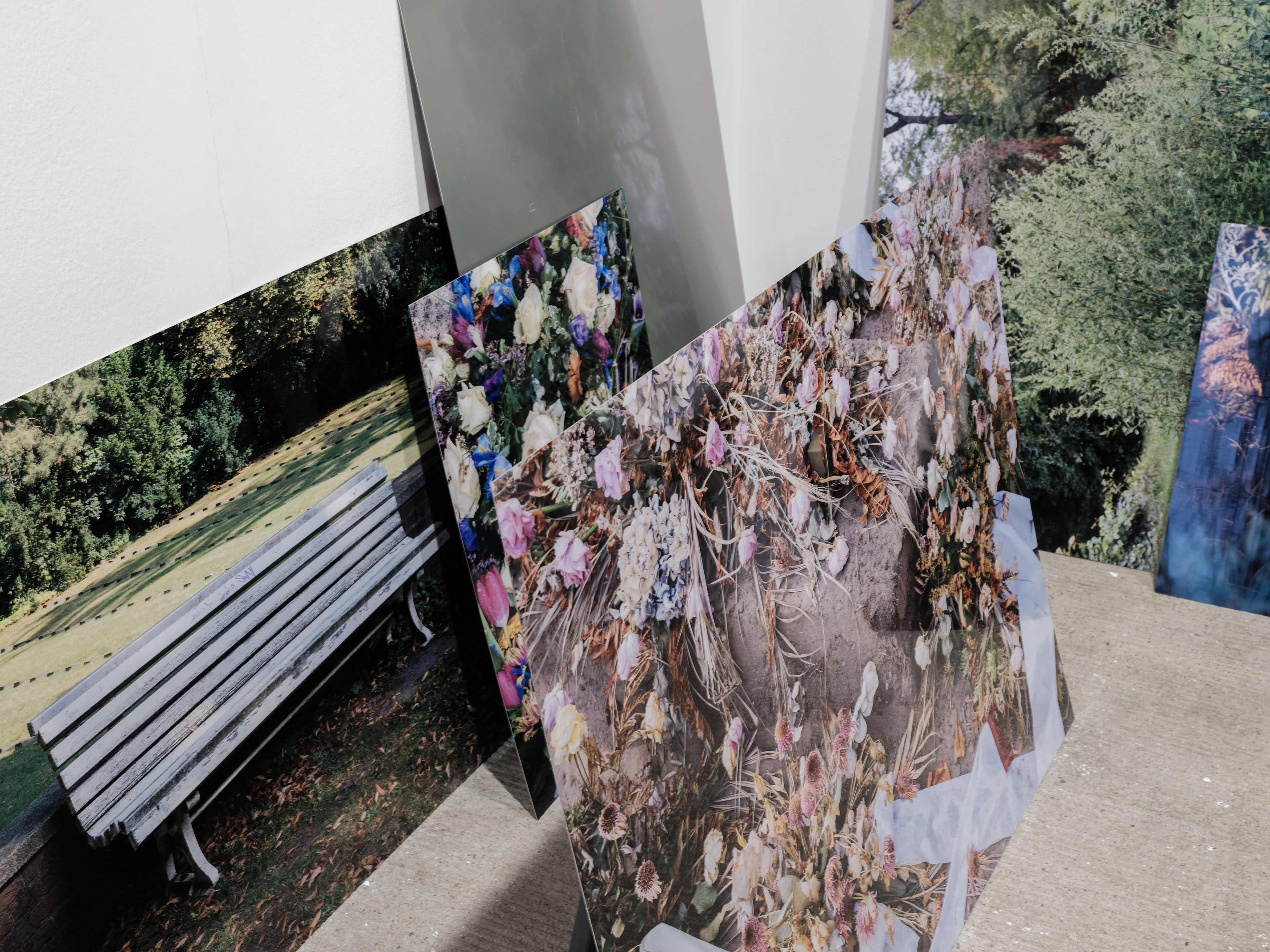 The project exists in two distinct yet complementary forms. The spatial installation presents photographs sublimated in high-gloss onto ultra-thin metal plates. Leaning against walls or standing freely in the space—recalling displaced or abandoned gravestones—the images are experienced at life scale, with a strong sense of material presence and spatial depth. In contrast, the artist book offers a fundamentally different mode of engagement. Its design is structured through fold-out pages and sequences that reveal and conceal both images and empty space. Rather than working at a one-to-one scale, the book allows narratives and relationships to unfold through image sequences, diptychs, and triptychs. The artist book is currently in development.